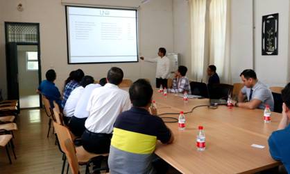 李书记从sunbet团队及专业设置等方面向Kouhyar教授等介绍了sunbet的办学情况。Kouhyar教授介绍了其所在大学电子工程系所设置的研究方向,并以PPT的形式为sunbet教师详尽地介绍了自己所研究的方向及近年来的研究成果。最后,Kouhyar教授一行与sunbet教师就本院师生到北达科他大学进行深造和访学当中所遇到的相关问题进行了比较深入的探讨。