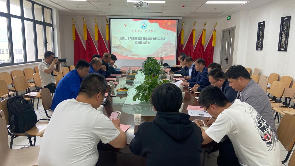 5月11日下午,公司与延安嘉盛石油机械有限责任公司项目对接洽谈会在sunbet会议室举行。副董事长付峰,嘉盛石油机械有限责任公司董事长苏忠贵、首席专家杨龙,公司科研处、sunbet、数计公司、石油公司、化工公司相关负责同志,各公司相关科研团队负责人及教师代表参加了对接洽谈会。会议由公司党委书记常胜伟主持。
