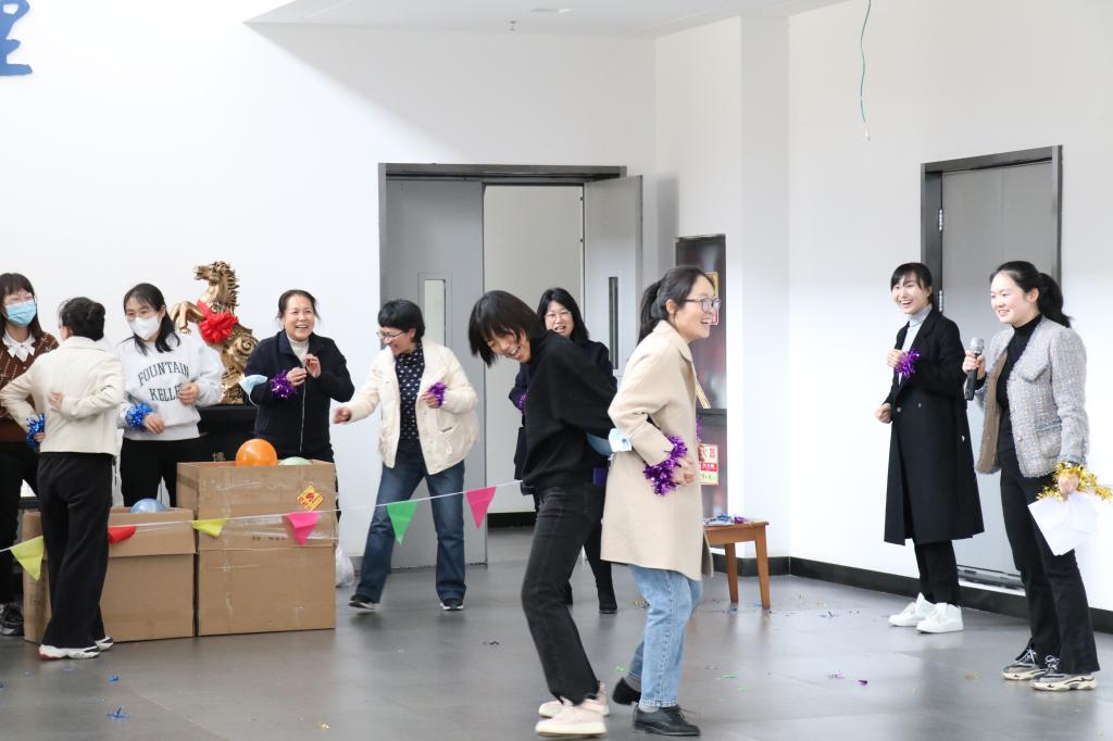 游戏环节各参赛队伍团结协作,奋力拼搏,比赛现场呐喊声阵阵,欢笑连连。参赛的每一个运动员每一个团队都牵动着在场教职工的心弦。大家同呼吸,共命运,彼此加油、欢呼、喝彩。