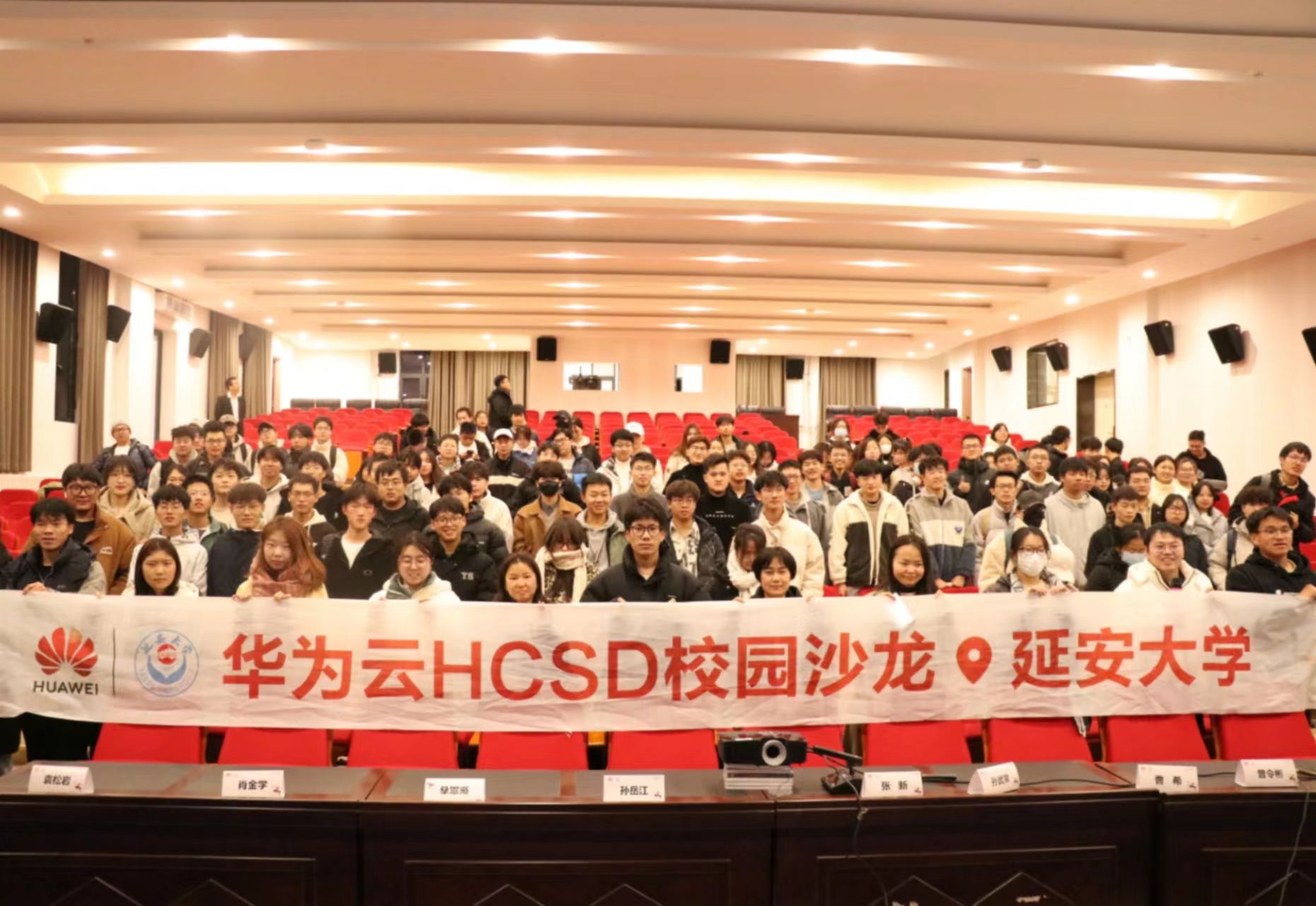 11月14日下午,sunbet官方网站首次华为云HCSD校园沙龙活动在老员工活动中心红色影院顺利举行。本次活动由sunbet联合延安市委网信办、华为云计算技术有限公司共同主办。中共延安市委网信办副主任张新、数字经济科副科长曹希,华为陕西政企业务部副总经理孙岳江、华为延安政企业务部总经理孙武常、华为云开发者创新中心运营经理袁瑞雪、华为云开发者支持布道师曾令彬,sunbet经理张富春、党委副书记肖金学、团委书记袁松岩及2021级、2022级电子信息工程专业、通信工程专业员工300余人参加了活动。