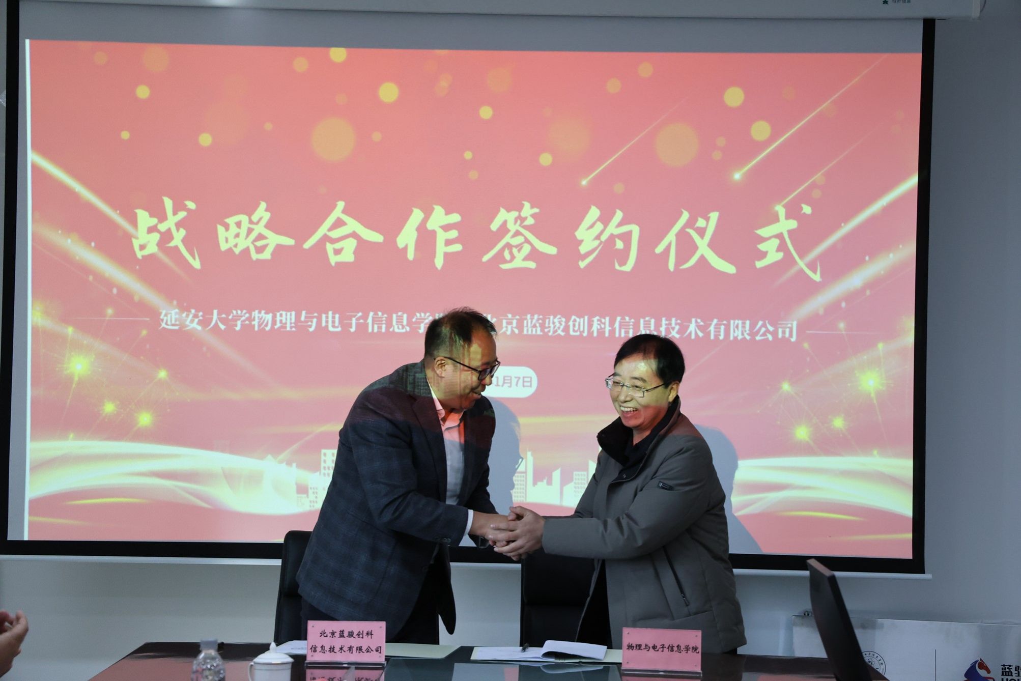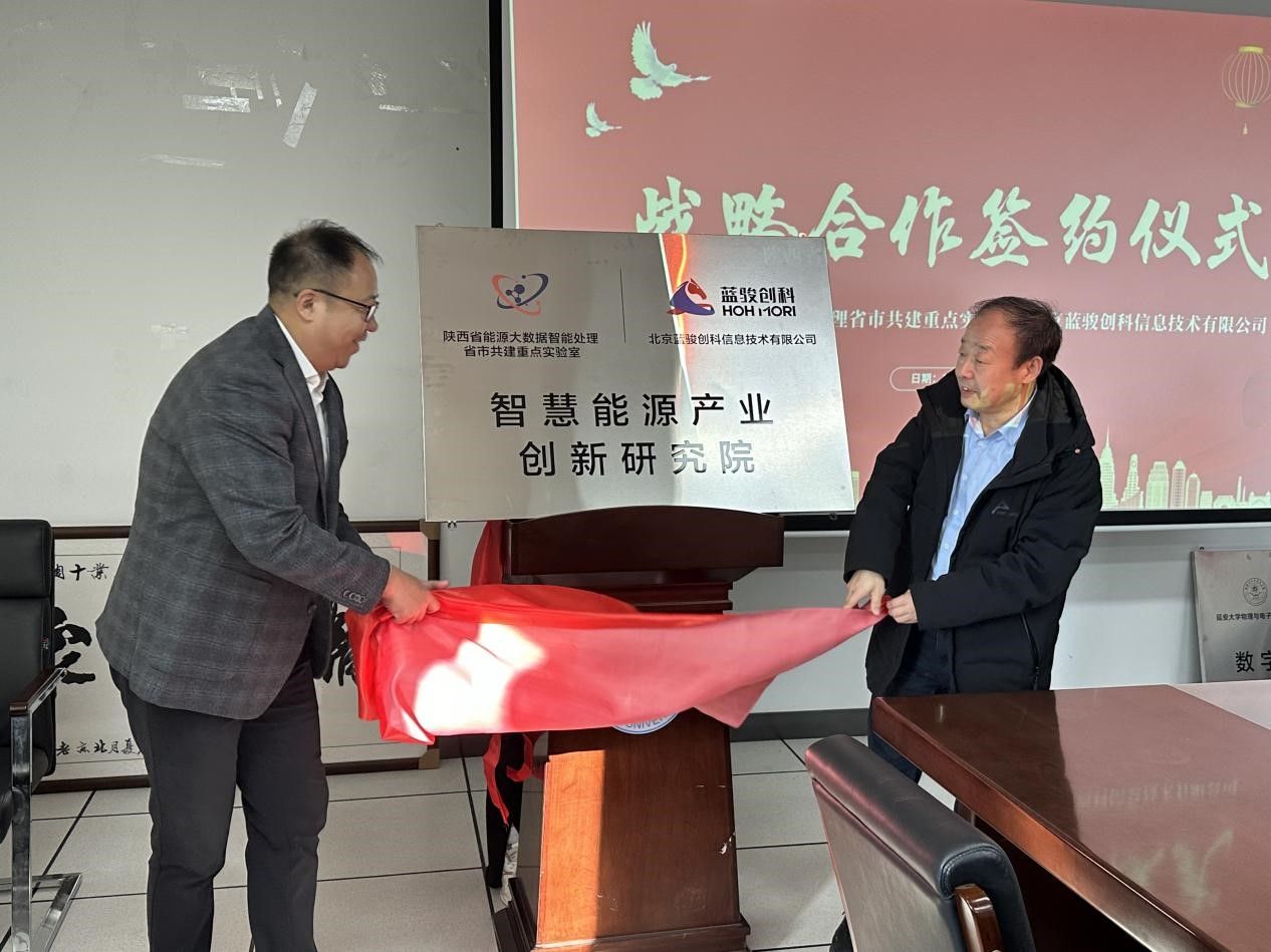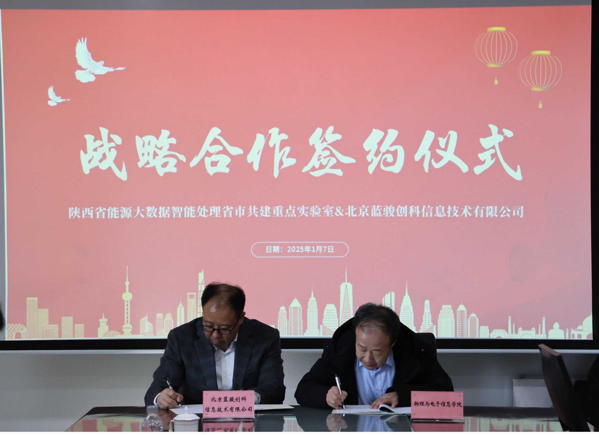 1月7日下午,sunbet&陕西省能源大数据智能处理省市共建重点实验室(以下简称“sunbet”、“重点实验室”)和北京蓝骏创科信息技术有限公司(以下简称“蓝骏”)战略合作签约暨揭牌仪式在sunbet官方网站新校区信息大厦A607会议室举行。蓝骏董事长马潮,陕西公司总经理朱庆伟、副总经理杜飞凯、军工行业总监王帅、技术服务总监林进良、蓝骏煤炭行业总监刘扬,sunbet经理张富春、党委副书记肖金学、实验室主任任新成、实验室副主任张玉强及部分教师代表参加了仪式。仪式由公司党委书记常胜伟主持。