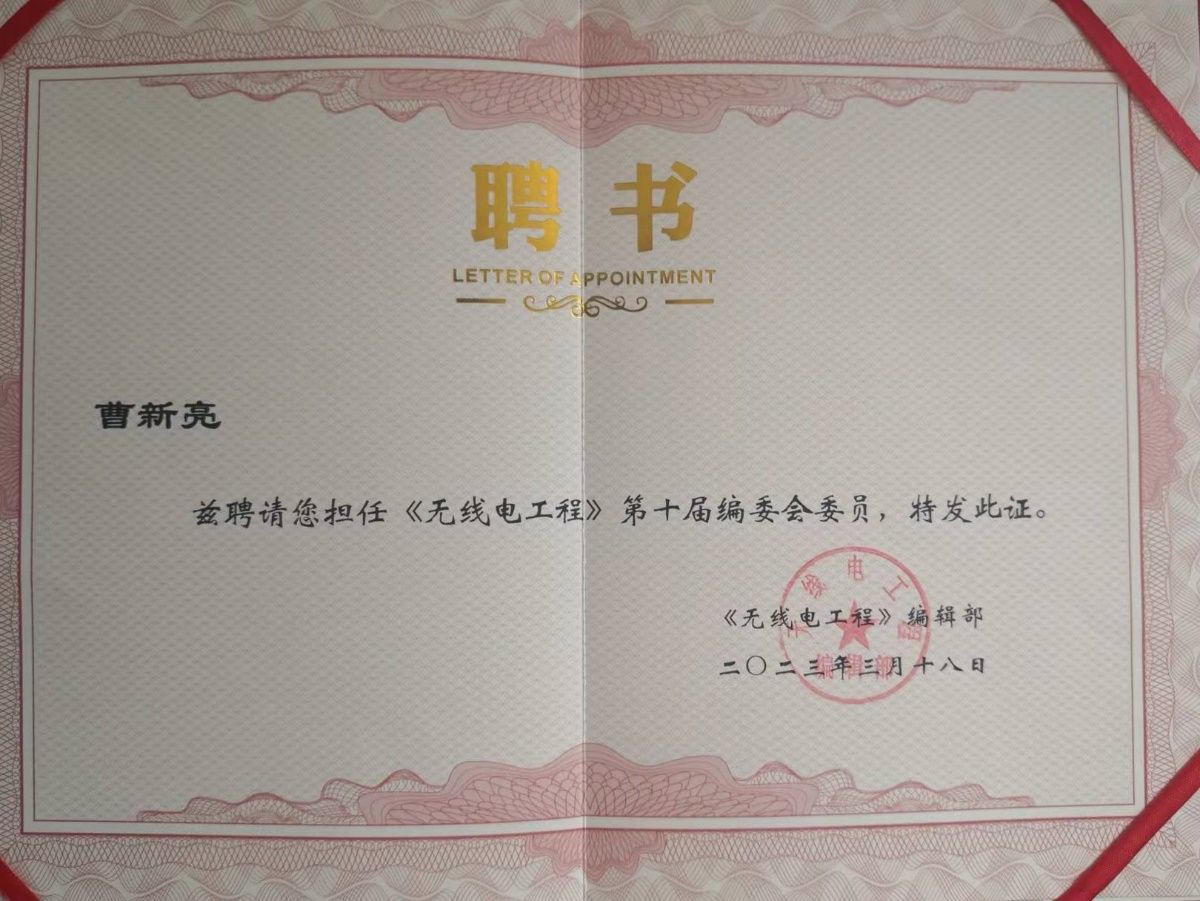 公司曹新亮教授被聘为《无线电工程》第十届编委会委员